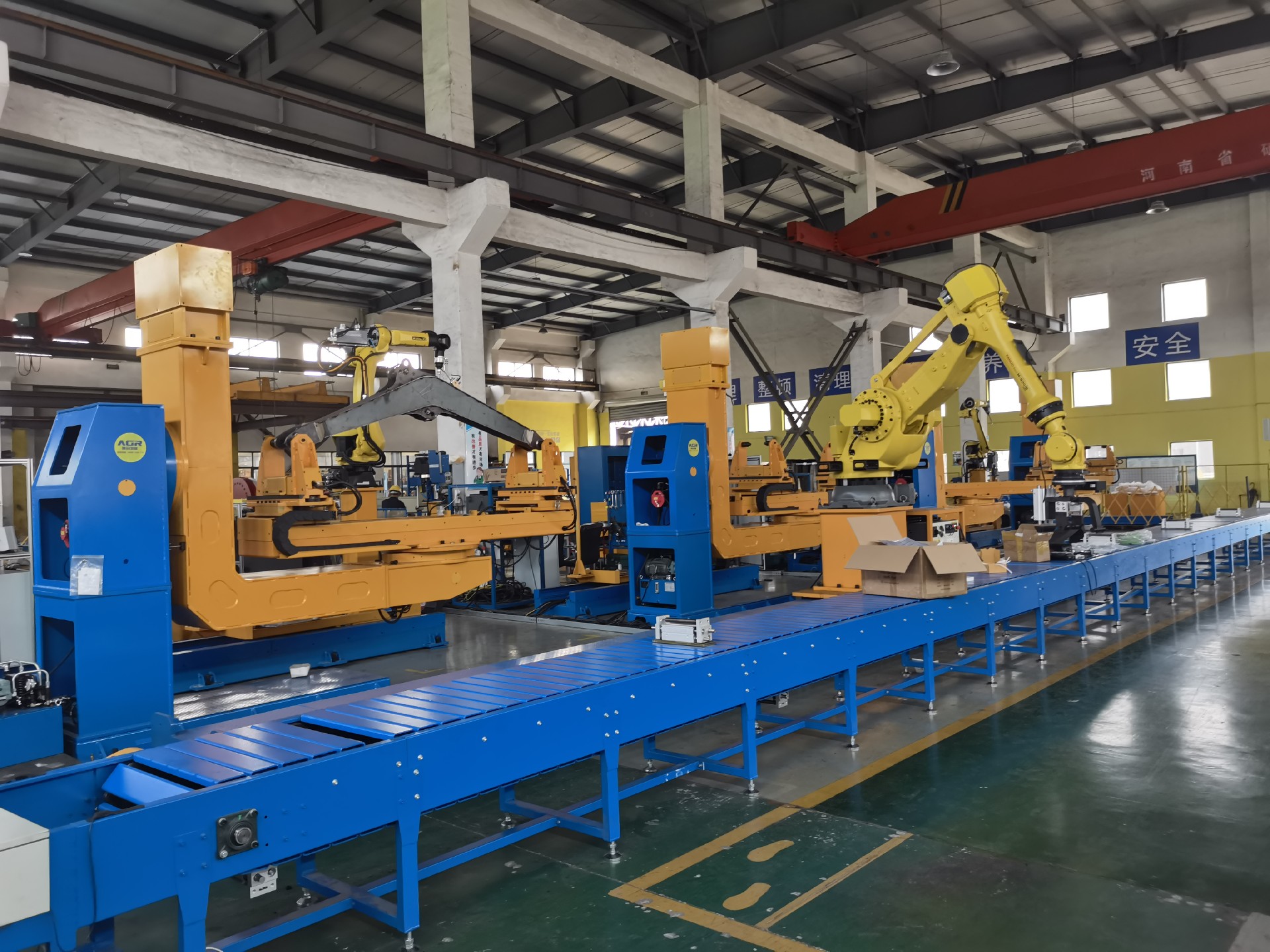 該產(chǎn)線由自動液壓夾具、聯(lián)動焊接變位機(jī)、焊接機(jī)器人行走機(jī)構(gòu)、FANUC焊接機(jī)器人、松下焊接電源、FANUC搬運(yùn)機(jī)器人、搬運(yùn)機(jī)器人行走機(jī)構(gòu)、自動輸送板鏈線、產(chǎn)品信息讀取系統(tǒng)及相關(guān)的周邊設(shè)備組成。系統(tǒng)的設(shè)計以焊接生產(chǎn)工藝的**化為目標(biāo),同時具備良好的安全性、方便的操作性以及性能的可靠性。